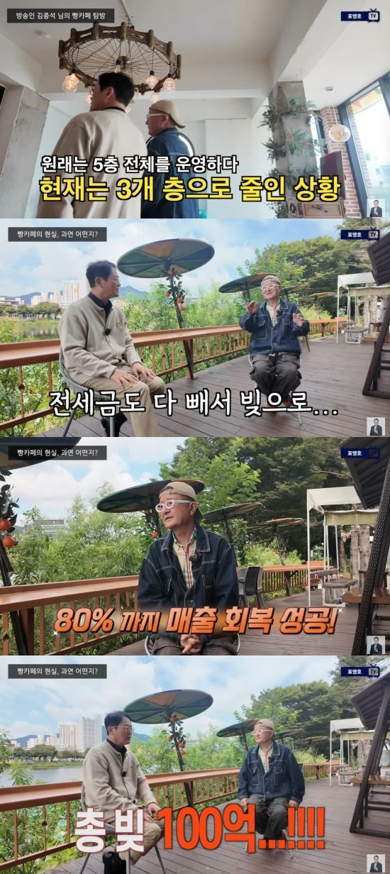 세 군데의 카페로 얻은 빚은 얼마나 될까. 김종석은 "정확하게 1호점에 22억, 2호점에 28억, 3호점에 50억이 있다. 총 100억"이라고 밝혔다. 이어 "현재는 삶이 굉장히 팍팍하겠다 싶어. 세 개 중에 하나를 팔아야겠다 싶어 극비리에 하나를 팔았다. 성수동에다 내놓고 팔았다. 쪽팔렸다"고 고백했다.