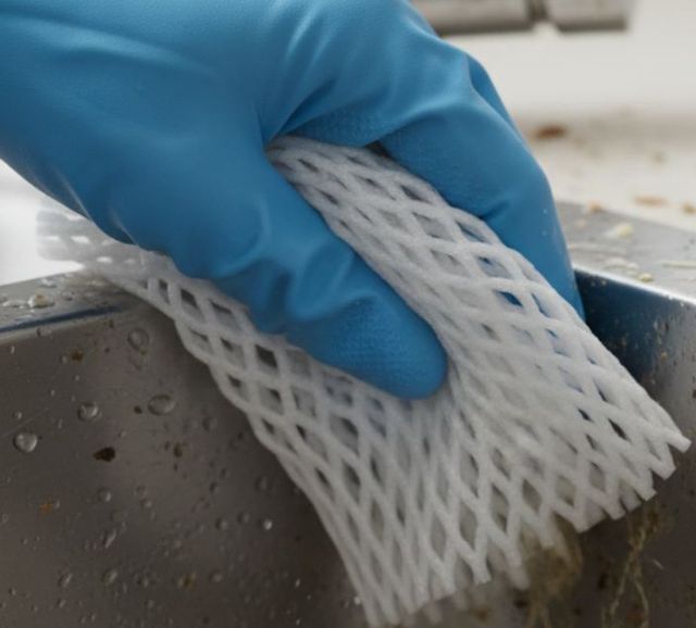 과일망은 싱크대 배수구 청소용으로도 유용하다. 배수망 안쪽, 뚜껑 주변, 물때가 낀 구석진 곳을 닦을 때 일반 수세미로는 한계가 있다. 이럴 때 과일망을 돌돌 말아 손가락에 끼우거나 젓가락 끝에 감아 쓰면 된다. 세제를 살짝 묻혀 문질러주면 배수구 속 이물질과 냄새 원인인 찌꺼기가 금세 제거된다.