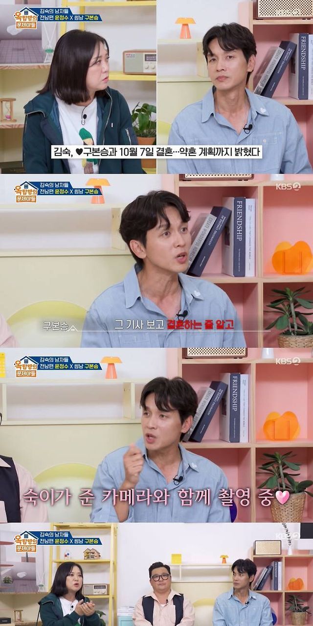 소문만 무성했던 '김숙 구본승 결혼설'에 직접 김숙과 구본승이 등판하기도 했다. 지난 2일 방송된 KBS 2TV '옥탑방의 문제아들'에는 김숙의 예능 전 남편 윤정수와 현 썸남 구본승이 게스트로 출연해 '10월 7일 결혼설'의 진실에 대해 이야기했다.