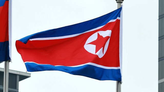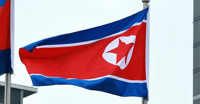 북한 국기 '홍람오각별기’ / 연합뉴스