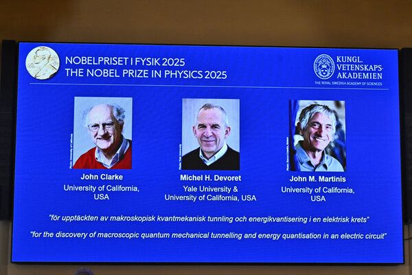 존 클라크와 미셸 드보레, 존 마티니스 등 3명 미국 과학자가 양자역학 연구로 2025년 공로로 2025년 노벨 물리학상을 공동 수상했다.