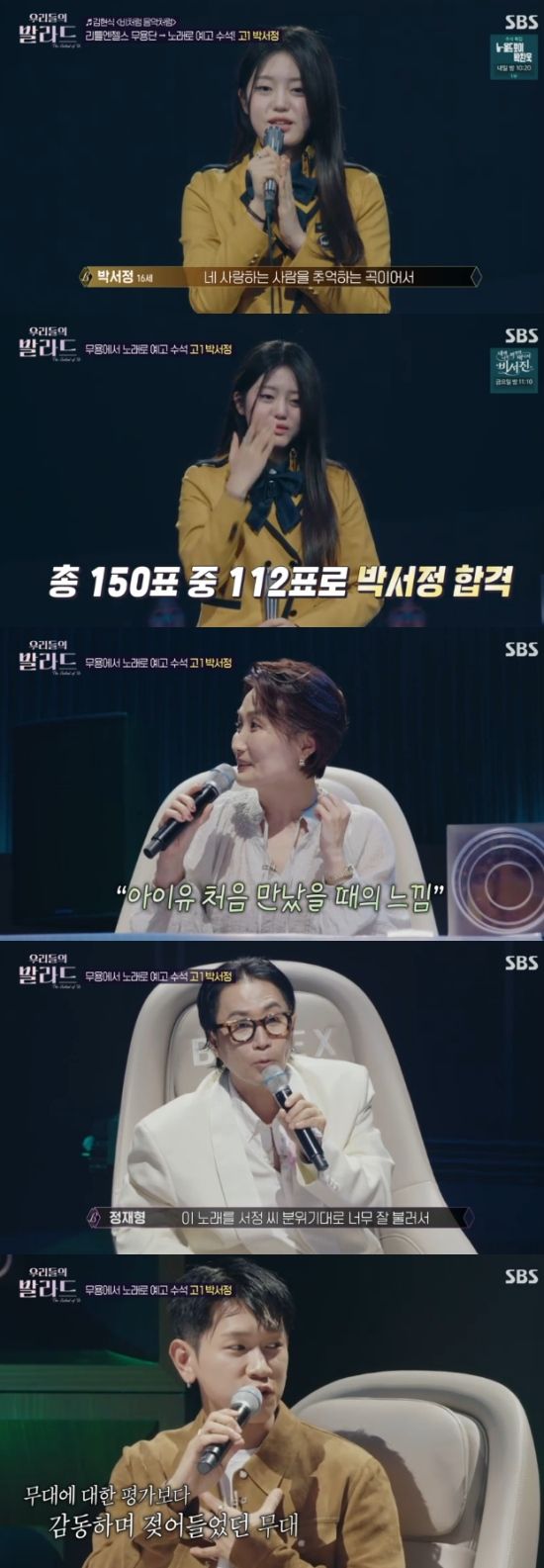 그리고 등장한 참가자는 교복을 입고 등장한 고등학생 소녀 박서정이었다. 박서정은 "리틀엔젤스에서 활동을 했다. 7년동안 무용을 했는데, 노래로 예고를 갔다. 이제는 춤이 아닌 목소리로 내 마음을 전하고 싶다는 생각이 들었다"고 자신을 소개했다.