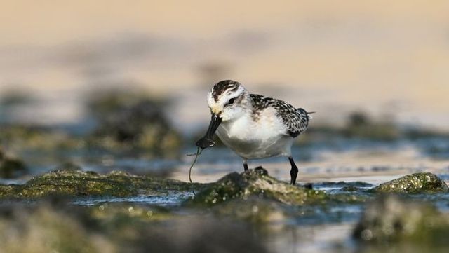 지난 2일 제주 서귀포시 표선면 표선해수욕장에서 넓적부리도요 1마리가 발견돼 먹이활동을 하는 모습이 포착됐다. 한국조류보호협회 제주도지회가 이 희귀한 장면을 확인했다.
