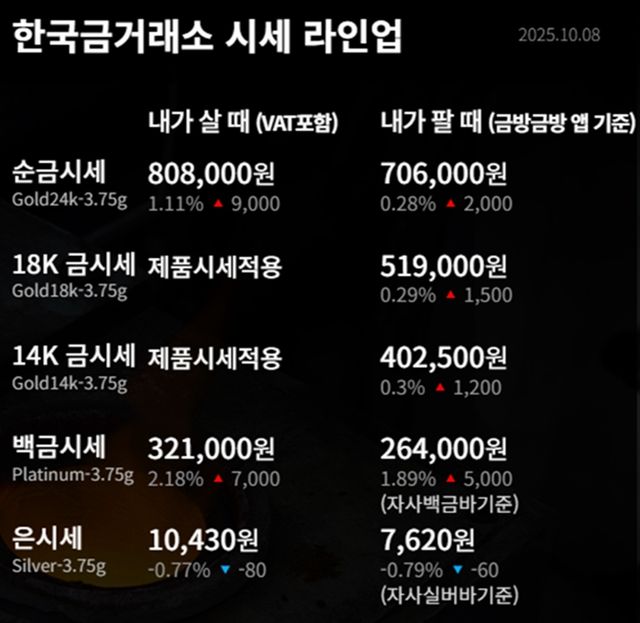 순금(24K) : 매입가 80만 8000원 / 매도가 70만 6000원