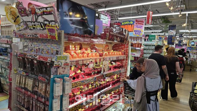 매장 내 한국 화장품 브랜드로는 에이피알(278470) ‘메디큐브’, 더파운더즈 ‘아누아’, 달바글로벌(483650) ‘달바’, 아모레퍼시픽(090430) ‘이니스프리’, LG생활건강(051900) ‘힌스’, 아이패밀리에스씨 ‘롬앤’, 브이티(018290) ‘VT’, 디와이디(219550) ‘릴리바이레드’, 구다이글로벌 ‘티르티르’ 등이 있었다. 이날 상품 매대에 빈 곳이 많았던 제품은 ‘메디큐브 PDRN 마스크 겔 마스크’, ‘아누아 어성초토너’, ‘토리든 클렌징폼’ 등이었다. 바로 옆 아누아 매대에서 만난 일본인 아야 마수다(24)씨는 “아누아 어성초토너를 사용하고 있는데, 특히 여름에 산뜻하게 쓰기 좋았다”고 말했다.
