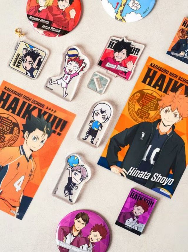 이번에 선보인 '하이큐!!' 랜덤 굿즈는 총 6종 라인업으로 구성됐다. 캐릭터의 포즈와 개성을 살린 아크릴 스탠드(전 15종), 휴대성과 장식성을 동시에 갖춘 아크릴 참(전 15종), 배구를 하는 캐릭터의 전신이 담긴 '아크릴 플레이트(전 15종)', 원하는 곳에 부착할 수 있는 '아크릴 마그넷(전 15종)', 원형 디자인으로 활용도가 높은 '캔뱃지 거울(전 10종)', 마지막 '클리어 카드(전 20종)'까지 풍성한 구성이 특징이다.