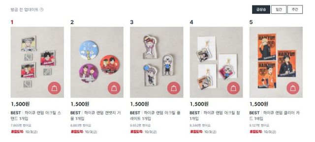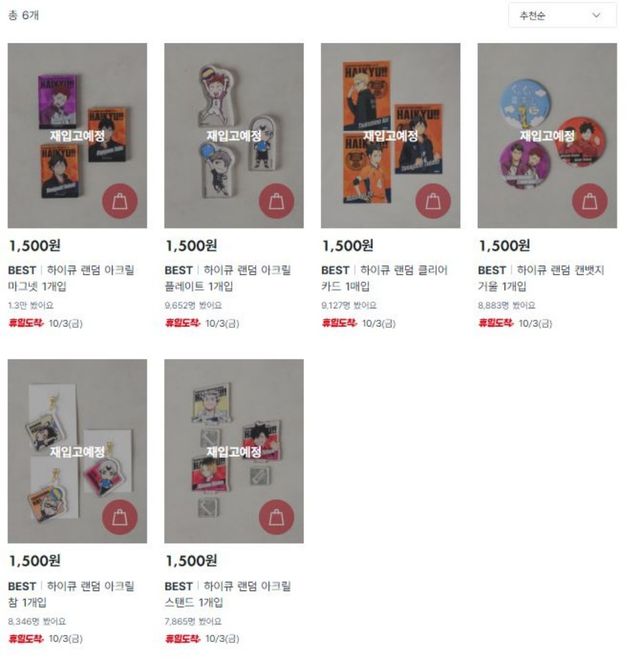임시품절된 상태의 '하이큐!!' 굿즈들. / 다이소몰 제공