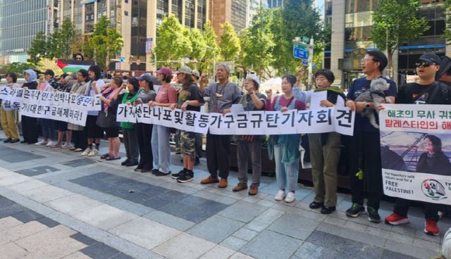 긴급행동 등은 “주이스라엘 (한국) 대사관은 구금자를 즉시 면담하고 변호사의 조력을 받을 수 있도록 하라”며 “한국 정부와 국회는 이스라엘의 국제법 위반과 인권 침해에 강력히 항의하라”고 요구했다.