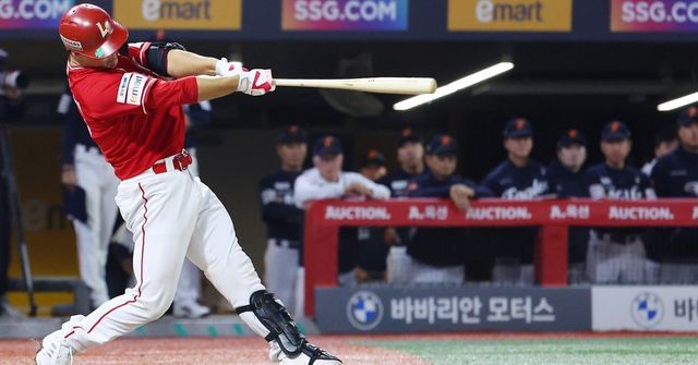 지난 1일 인천 SSG랜더스필드에서 열린 2025 프로야구 한화 이글스와 지난 2일 SSG 랜더스의 경기. 9회 말 2사 1루 상황에서 SSG 이율예가 역전 끝내기 투런 홈런을 치고 있다. / 연합뉴스