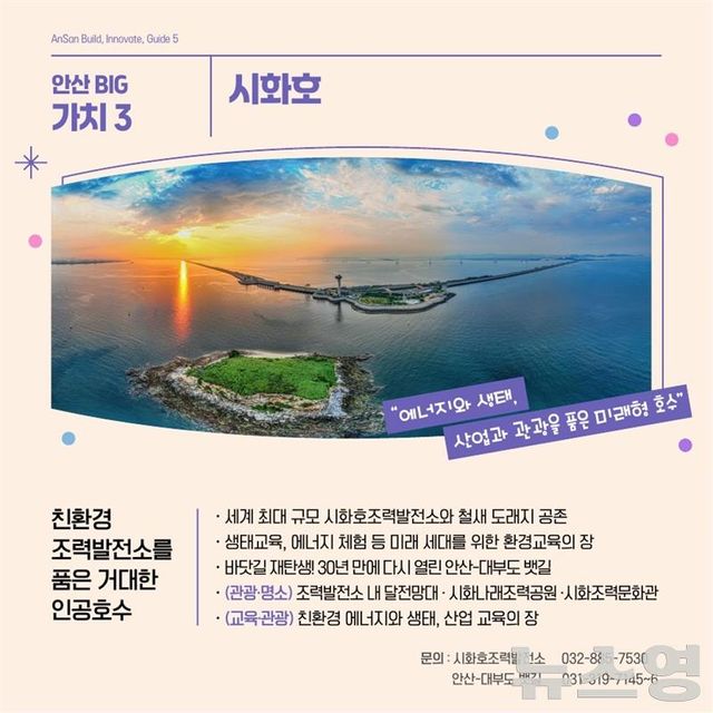 세계 최대 규모의 시화호조력발전소와 생태 철새 도래지가 공존하는 시화호는 안산의 ‘친환경 도시 정체성’을 대표한다.