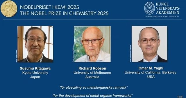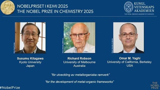 올해 노벨화학상은 금속·유기 골격체를 개발한 기타가와 스스무 일본 교토대 교수, 리처드 롭슨 호주 멜버른대 교수, 오마르 M. 야기 미국 UC버클리대 교수 등 3인에게 돌아갔다.