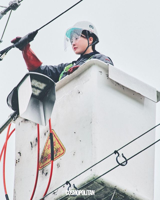 해사하게 웃는 얼굴로 단숨에 전봇대 높이까지 올라가서는 활선 형태의 전기를 만지며 신규 송전 및 유지·보수 작업을 하는 배전 기술자. 한국전력 저압단가 배전 현장에서 근무하는 국내 유일 여성 근로자다.