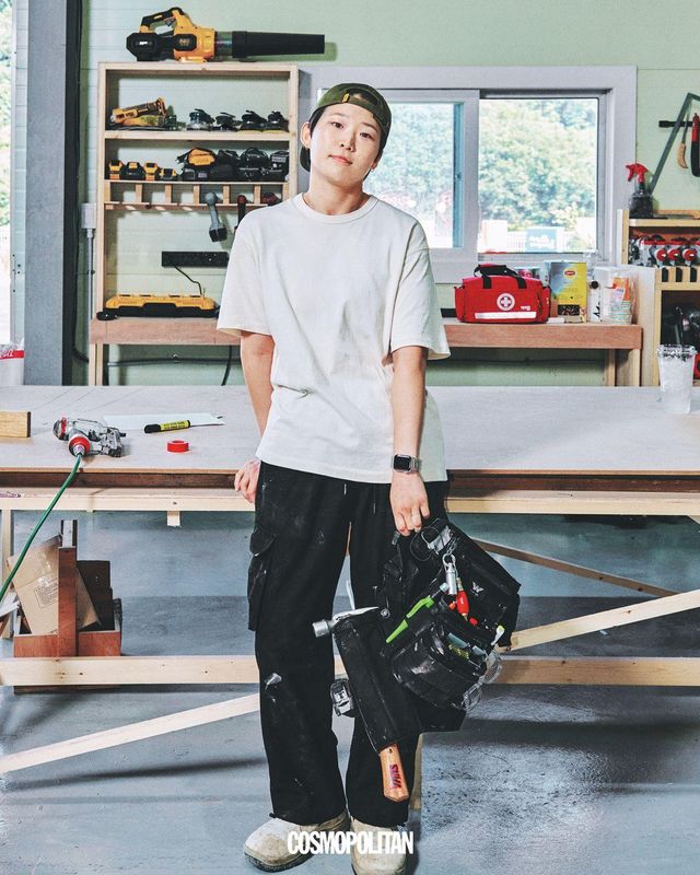 “한번은 문자메시지로만 소통하던 인테리어 소장님과 일을 하게 돼 아침 6시부터 50km 거리를 달려 현장에 도착했는데, 소장님이 여자 작업자는 안 된다며 거절하셨어요. ‘남자가 하는 것들은 다 할 수 있어요’라고 어필했지만 불편하다며 끝내 돌려보내셨죠.” 여자라서, 어려서, 연차가 낮아서 함께 작업할 기회조차 얻지 못하던 지난날을 되짚어보면 여전히 속상하다고. “목수에 도전하기 전에는 인테리어 디자이너였어요. 의뢰가 들어오면 기획과 설계 브랜딩 등의 업무를 수행했죠. 그러다 현장 업무까지 직접 해보고 싶은 생각이 들어 고민 끝에 목수 학원에 등록했어요. 목수 커뮤니티 카페에 첫 구직글을 올렸던 기억이 아직 생생해요.” 그가 목수로서 처음으로 일을 나간 현장에선 오전 내내 석고보드, 각재, 장비 등을 ‘양중(각종 장비를 옮기는 일)’하는 일만 했다. 현장에 한번 다녀오면 3일 정도는 앓아눕는 것이 일상이었다고. “남성과는 생물학적으로 어쩔 수 없이 체격과 힘에서 차이가 나요. 그럴 때면 그들이 하는 몫만큼 최대한 따라 하려고 이를 더 악물죠.” 구조 이해 능력, 상황 판단력, 순발력 그리고 힘. 반나라 씨가 꼽은 목수로서 일을 할 때 가장 요구되는 능력이다. “전문성을 갖췄다기엔 아직 부족한 점이 많아요. 거래처와 좋은 관계를 유지해나가는 커뮤니케이션 능력은 일을 하는 데 도움이 많이 돼요.” 아직 불편한 인식과 성차별이 존재하는 공사 현장에서 여자 목수가 아닌, 그냥 ‘목수’ 그 자체로 실력을 인정받고 싶다는 의지는 반나라 씨를 앞으로 나아가게 하는 힘이다. “언젠가는 팀을 꾸리고, 그 팀을 기업화해 목수들이 좀 더 안정적인 생활을 할 수 있게 운영해보고 싶어요.”