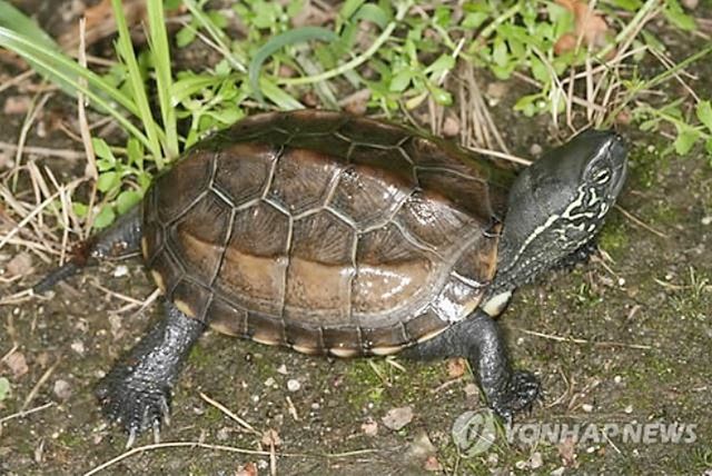 멸종위기 야생동물 남생이 모습.남생이는 한국, 중국, 일본 등 동아시아 민물에 서식하는 토종 거북으로, 멸종위기 야생동물로 지정돼 보호받고 있다. 대한민국 환경부는 남생이를 멸종위기 야생생물 Ⅱ급으로 분류하며 천연기념물 제453호로 지정해 관리한다. / 환경부 제공-연합뉴스