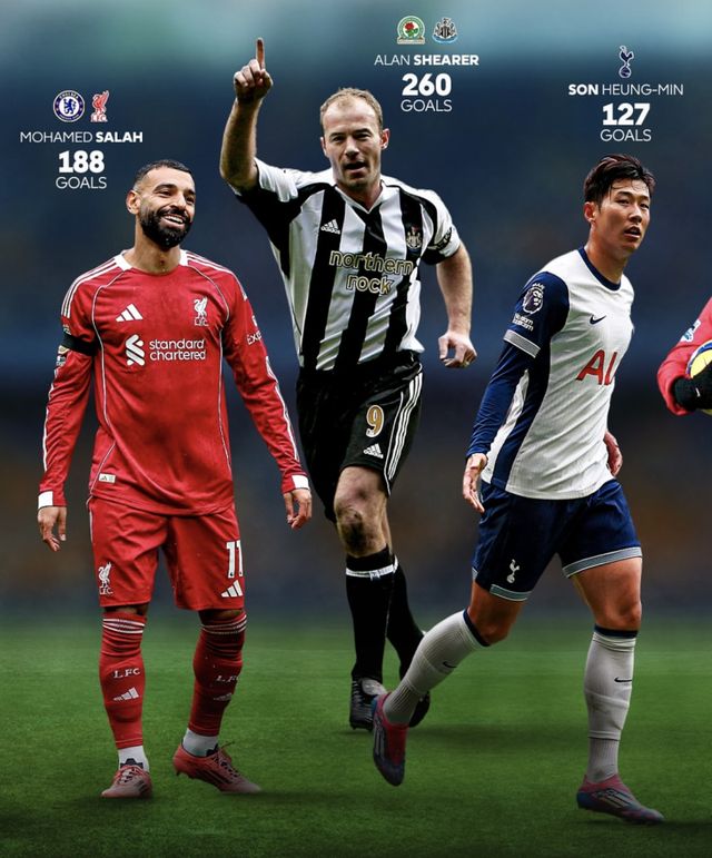 EPL 사무국은 이 선수들이 활약했던 소속팀, 득점 수를 조명하는 사진을 게시했다. 손흥민은 살라, 시어러와 한 컷에 담겼다.