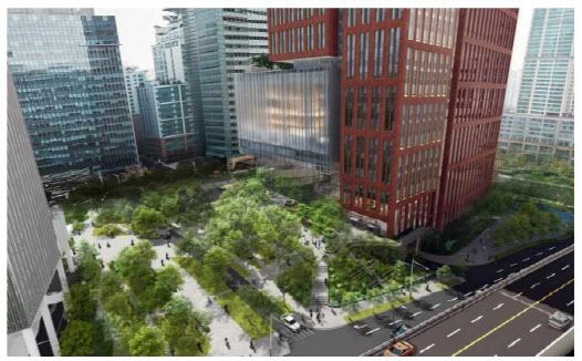 대지 내 건축물의 면적을 줄이고 저층부에 녹지와 개방형 공공공간을 조성해 시민 누구나 자유롭게 휴식할 수 있는 환경을 제공하는 것이 목표다. 오 시장이 추구하는 ‘녹지 생태 도심’의 모델은 일본 도쿄 도심 한복판에 있는 숲 ‘오테마치 포레스트’다.