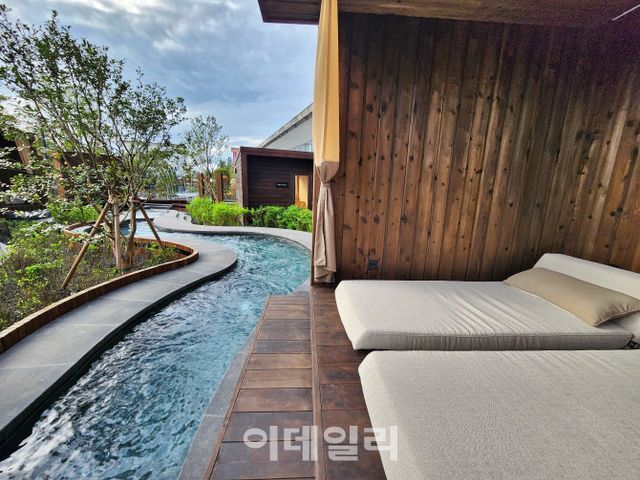가장 큰 변화는 ‘웰니스 풀앤스파’다. 실내외 수영장, 노천탕, 프라이빗 카바나를 연결한 복합형 수공간. 지하 680m에서 끌어올린 천연 온천수를 사용한다. 수온은 39도 안팎으로 물은 맑고 부드럽다. 스파 외부에는 조경을 새로 조성해 호수와 이어지는 듯한 시각적 효과를 줬다. 밤이면 조명이 수면에 비치며 물결이 빛을 따라 흔들린다.