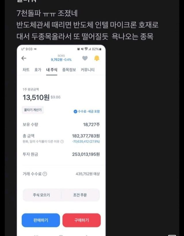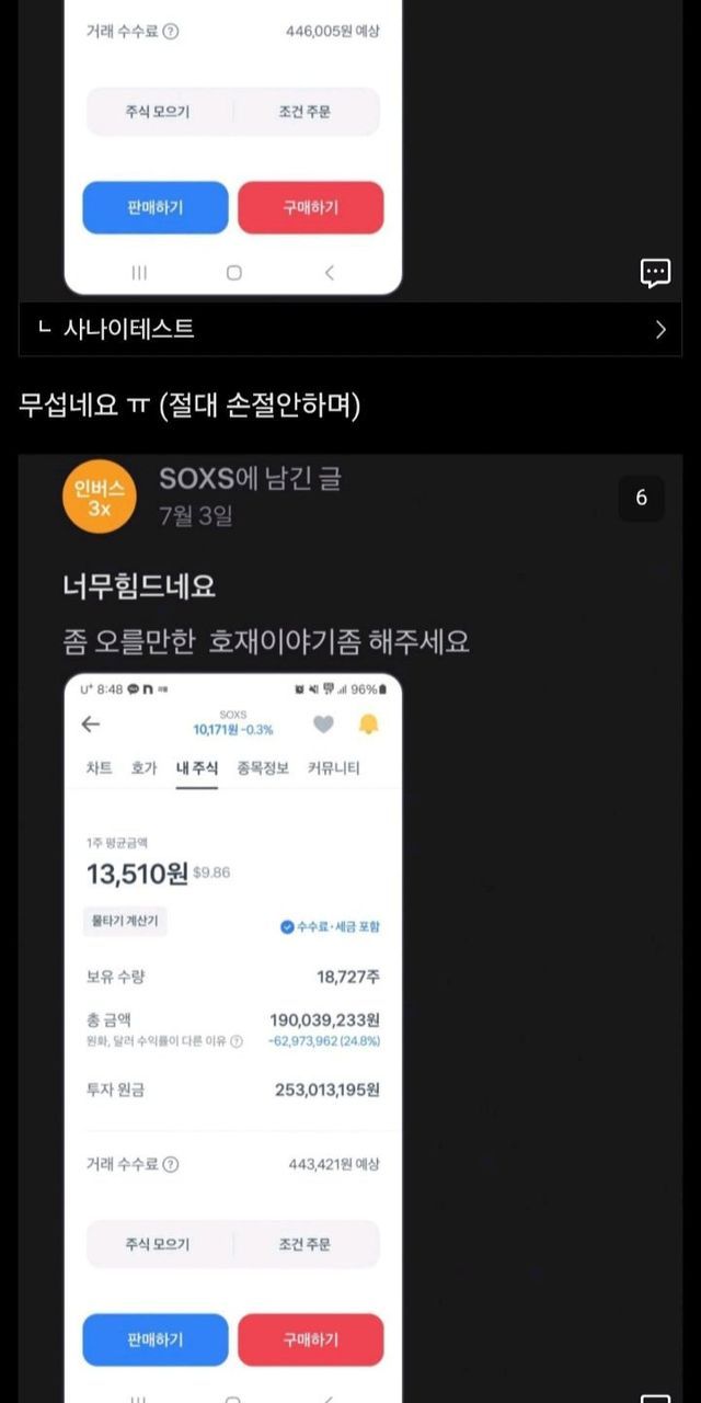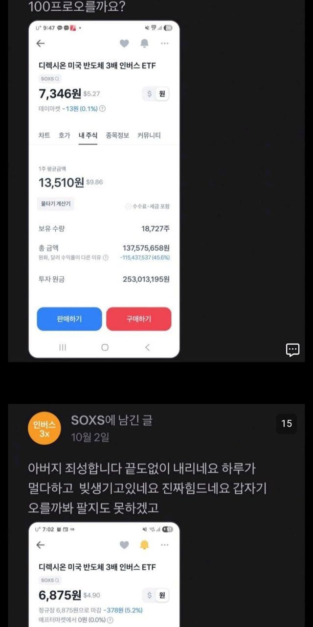 엔비디아가 하락하면 인텔이 올라서 번갈아가며 soxs 죽이던 시기