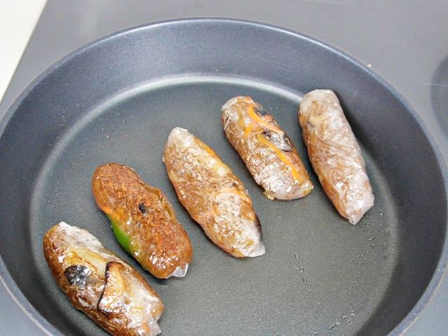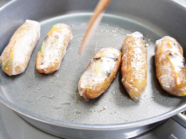 기름을 살짝 두르면 라이스페이퍼가 바삭하게 구워져 식감이 훨씬 좋아요.