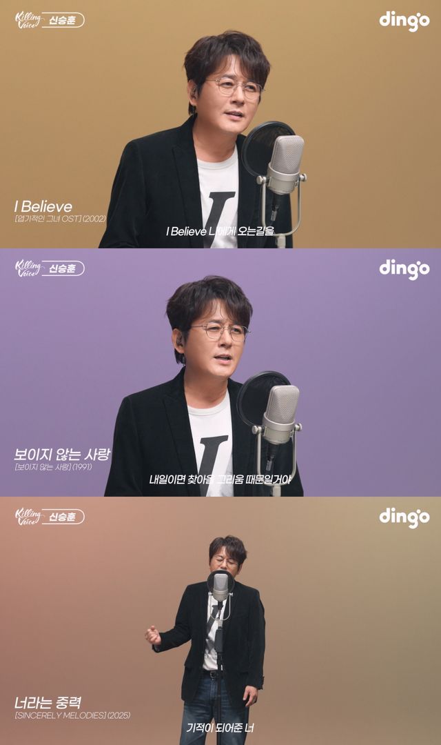 이어 신승훈은 지난달 23일 35년 음악 여정을 집약한 정규 12집 ‘신시얼리 멜로디즈’를 내놓았다. 더블 타이틀곡 ‘너라는 중력’은 어쿠스틱과 일렉 기타가 어우러진 서정적 발라드, ‘트룰리’는 오랜 고민 끝에 완성된 성찰적 곡으로 그의 내공을 증명한다. 여기에 시티팝 ‘러브 플레이리스트’, 오케스트라 발라드 ‘저 벼랑 끝 홀로 핀 꽃처럼’ 등 다양한 결을 담아 발라드의 확장 가능성도 보여줬다. 타이틀곡은 멜론 차트에 안착했고, 그의 라이브가 담긴 웹 예능 ‘킬링 보이스’는 공개 2일 만에 50만 뷰를 돌파하며 변치 않는 대중성을 입증했다.