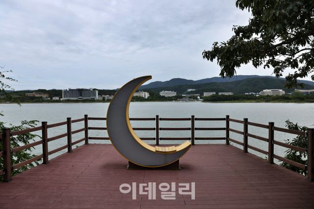 공원 안쪽 전망대 ‘도약의 링’은 보문호의 전경을 한눈에 담을 수 있는 명소다. 위에서 내려다보면 공원의 전체 형태는 ‘뫼비우스의 띠(∞)’ 모양으로 보인다. 끝없이 이어지는 시간의 상징이다. 전망대에 서면 가까운 수면 위로 구름이 내려앉고, 바람에 일렁이는 물결이 고요히 퍼진다. 관광의 과거와 현재가 한눈에 들어온다.