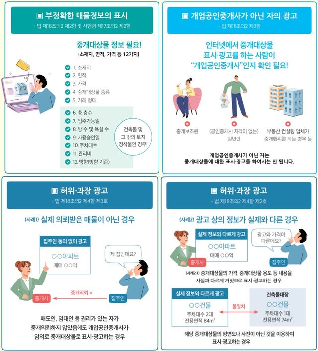 그럼에도 불구하고 허위·과장 광고에 속아 피해를 입었다면 적극적으로 신고해야 한다. 국토부는 ‘부동산 불법행위 통합신고센터’를 통해 허위 매물과 불법 광고를 접수받고 있다.