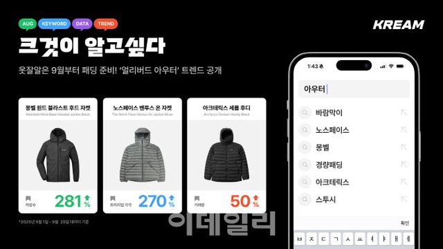크림 관계자는 “최근 간절기가 짧아지면서 트렌치 코트나 일반 재킷 대신 활용도가 높은 바람막이나 경량 패딩을 미리 구매하는 ‘얼리버드 아우터’ 트렌드를 뚜렷하게 확인할 수 있었다“며 “빠르게 변화하는 데이터를 기반으로 얼리버드 아우터 단독 선발매 등 차별화된 큐레이션에 집중할 것”이라고 밝혔다.