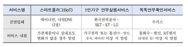 스마트안부확인 서비스란 일상생활에서 발생하는 전력·통신 등 생활 데이터를 AI(인공지능)·IoT(사물인터넷)가 감지·수집·분석해 위기 신호가 발생하면 관제와 출동으로 안부를 확인하는 복지 서비스다.