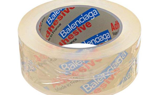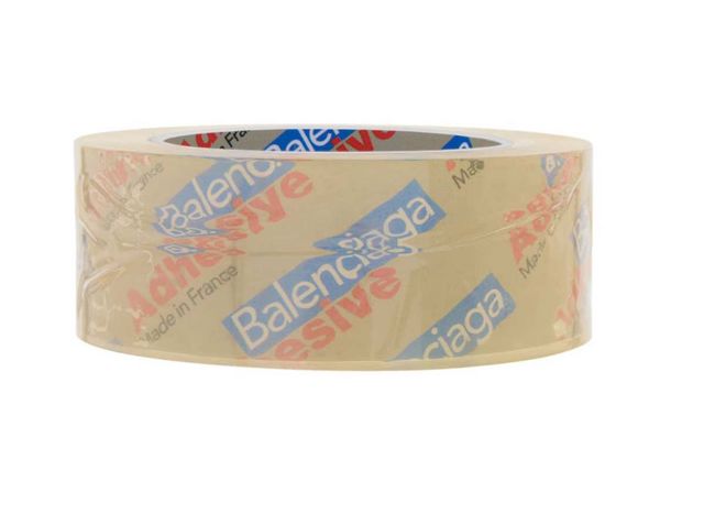 이 제품은 투명한 플라스틱 형태에 검정색 띠가 둘러져 있으며, 띠 위에는 'Balenciaga Adhesive(발렌시아가 어드허시브)'라는 문구가 인쇄돼 있다. 얼핏 보면 택배 상자 포장에 쓰이는 박스테이프와 거의 구분이 안 될 정도다.