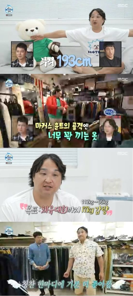 구성환은 사이즈 이슈에 현재 몸무게가 112kg 정도 나간다고 털어놓으면서 전현무와의 체육대회까지 95kg을 만드는 게 목표라고 했다.