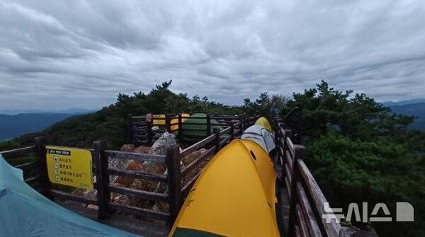 공개된 사진에는 전망대 통로에 텐트들이 빼곡히 들어선 모습이 고스란히 담겼다. 일반 등산객이 지나가기 어려운 수준이다.
