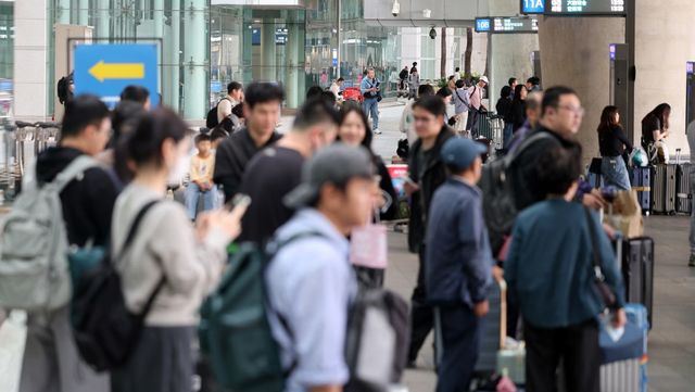 추석 연휴 마지막날인 9일 오후 인천국제공항 입국장 버스정류장에서 여행객들이 버스를 기다리고 있다. / 뉴스1