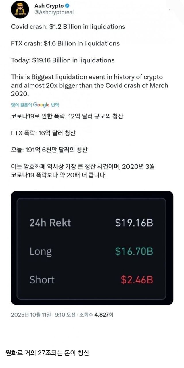 코로나 폭락, ftx 폭락과는 비교도 안되는 역대 최고 금액 청산이 오늘 일어남