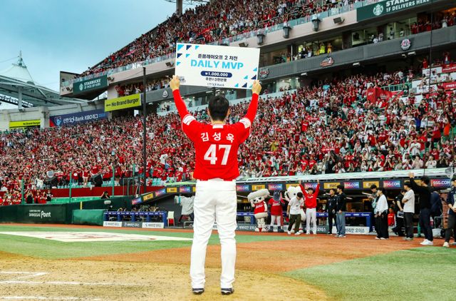 침묵하던 김성욱은 박진만 감독의 승부수를 수포로 만들었다. 1사 주자 없는 상황에서 후라도의 몸쪽(우타자 기준) 직구를 공략했고 맞는 순간 장내 모든 관중을 기립하게 만드는 타구를 날렸다. 모두의 예감대로 타구는 담장을 넘었다. 김성욱은 그렇게 준PO 2차전 SSG 승리를 이끌고 데일리 최우수선수(MVP)에 올랐다.