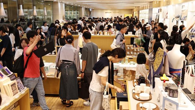 '케데헌' 열풍 이후 국립중앙박물관 공식 굿즈 매장이 관람객들로 붐비는 모습 / 뉴스1