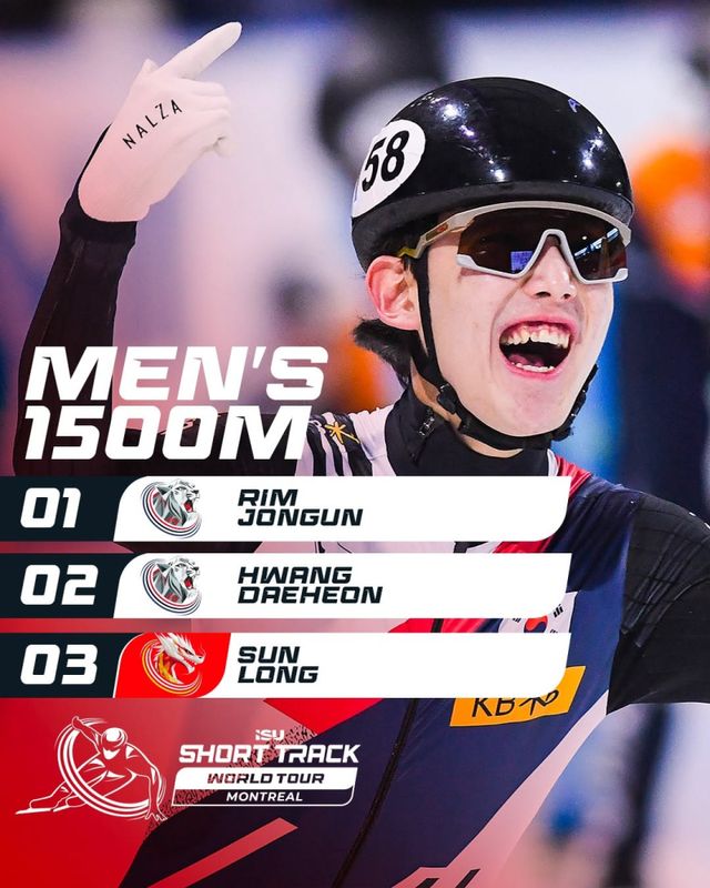 임종언은 12일(한국시간) 캐나다 퀘백주 몬트리올의 모리스 리처드 아레나에서 열린 2025~26 ISU 쇼트트랙 월드투어 1차 대회 남자 1500m 결승전서 2분16초141의 기록으로 우승했다. 그는 황대헌(2분16초593) 쑨룽(중국·2분16초808)을 앞질렀다.