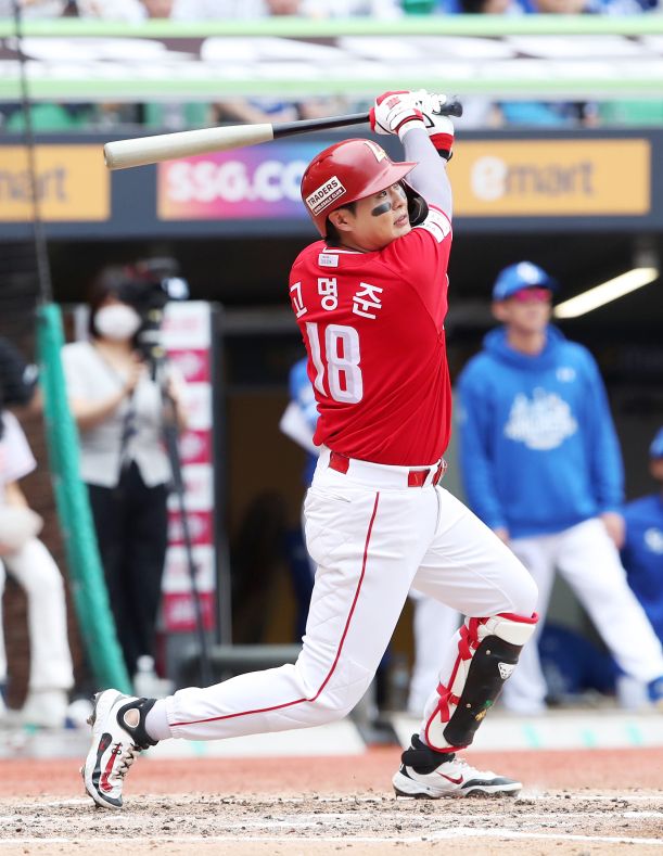 고명준은 개인 첫 가을야구에서 존재감을 보여주고 있다. 지난 9일 열린 삼성 라이온즈와의 준플레이오프(준PO·5전 3승제) 1차전에서 7회 투런 홈런, 11일 2차전에선 2회 솔로 홈런을 각각 때려냈다. 시리즈 2안타 2개가 모두 홈런. 특히 2차전에선 삼성 선발 헤르손 가라비토의 체인지업을 받아쳐 가운데 펜스를 넘기는 비거리 125m 장타로 연결했다. 컨디션이 좋지 않았다면 땅볼로 이어졌겠지만, 완벽한 타이밍에 퍼 올렸다.