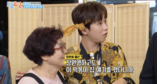 이촌동 맛집인 떡볶이집에 도착하자 딘딘은 가게 사장과 반갑게 인사를 나눴다. 딘딘은 “우리 동네에서 이 떡볶이집이 제일 명소일 거다. 장원영하고도 이 떡볶이집 얘기를 했다”라며 같은 동네 장원영과의 친분을 자랑했다.