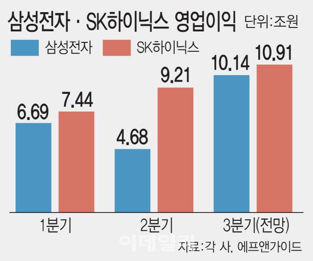 AI 메모리의 핵심인 HBM 주도권을 쥐고 있는 SK하이닉스 역시 3분기 영업이익 10조원 돌파가 유력하다. 이달 말 3분기 실적을 발표할 SK하이닉스의 영업이익 컨센서스는 10조9142억원이다. 오픈AI의 미국 스타게이트 프로젝트를 비롯해 오픈AI와 AMD 간 대규모 그래픽처리장치(GPU) 공급계약 체결 등 HBM 시장 자체의 확대가 예상된다. 3분기 어닝 서프라이즈가 기대되는 대목이다.