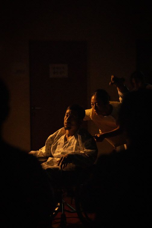 이들이 바라보는 세상의 풍경은 초현실적인 이미지를 만든다. 간호사가 한쪽 다리를 수직으로 들어 올리며 환자들에게 따라 하라고 독려하기도 하는데, 이 장면은 김 예술감독이 폐암 수술 후 재활치료를 하는 아버지를 지켜본 경험에서 착안했다. 폐 절제 수술을 받은 환자에게는 ‘수술한 쪽 손으로 반대편 귀를 잡는 동작’이 생각보다 쉽지 않다고 한다. 김 예술감독은 서로 다른 처지에서 느끼는 감정과 인식의 간극을 무대 위에서 극대화했다.