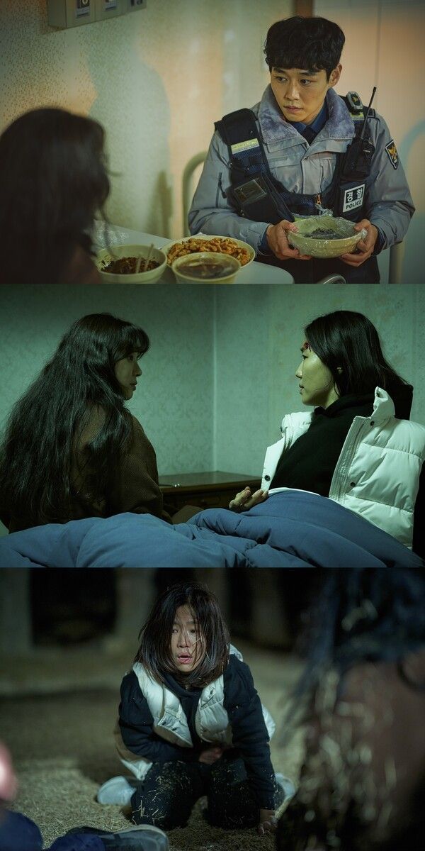 사건이 발생한 그날 밤으로 다시 돌아가 도경과 은서가 방에서 마주한 장면이 펼쳐진다. 의미심장한 표정의 도경 언니 미경(장진희), 참혹한 상태의 은서, 광기 어린 눈빛의 정만(강정우), 그리고 불안과 초조에 휩싸인 도경의 모습까지 담긴 스틸은 누가 범인인지 알 수 없는 긴장감 속에서 인물들의 숨겨진 진실과 사건의 실마리를 추리하게 만든다.