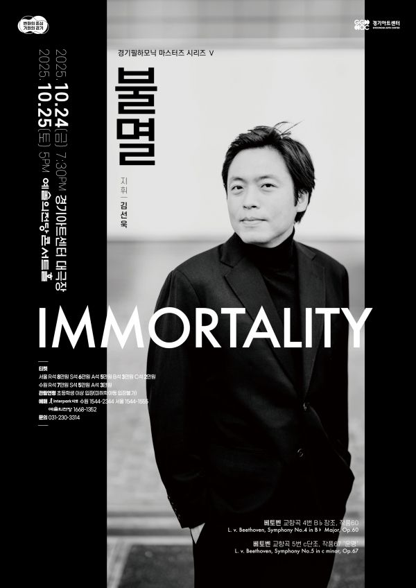 경기필하모닉오케스트라가 오는 10월 24일(금) 경기아트센터 대극장과 10월 25일(토) 예술의전당 콘서트홀에서 ‘경기필 마스터즈 시리즈 V <불멸>’을 선보인다.
