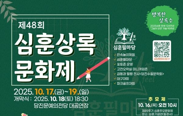충청남도 당진시는 '상록수'의 작가이자 독립운동가인 심훈 선생을 기리는 ‘제48회 심훈상록문화제’를 오는 17∼19일 당진문예의전당 일원에서 진행한다고 밝혔다.
