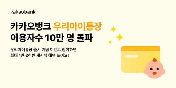카카오뱅크는 '우리아이통장'과 '우리아이적금'의 이용자 수가 10만명을 돌파했다고 13일 밝혔다.