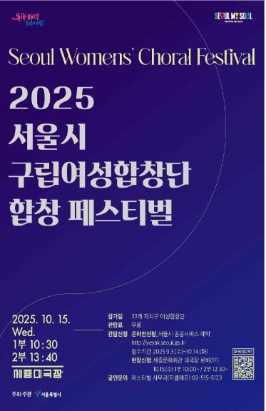 서울시는 깊어가는 가을을 맞아 오는 10월 15일(수) 오전 10시 30분부터 세종문화회관 대극장에서 ‘2025 서울시 구립여성합창단 합창 페스티벌’을 개최한다.