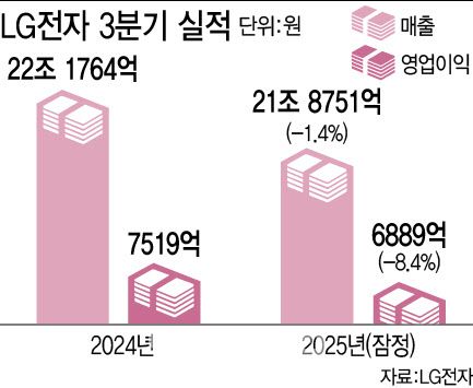 LG전자는 13일 연결기준 올해 3분기 매출 21조8751억원, 영업이익 6889억원의 잠정실적을 기록했다고 발표했다. 각각 전년 동기 대비 1.4%, 8.4% 감소했지만 시장 전망치를 소폭 상회하는 수치다. 금융정보업체 에프앤가이드가 발표한 LG전자의 3분기 실적 컨센서스(전망치)는 매출액 21조2278억원, 영업이익 6005억원이었다.