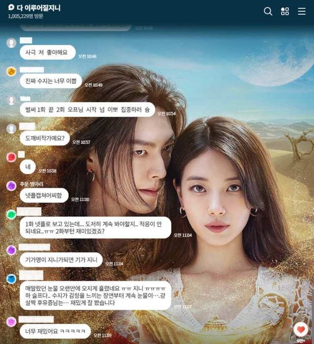 13일 업계에 따르면 네이버 개방형 커뮤니티 서비스 오픈톡 내 '다 이루어질지니' 전용 채팅방의 누적 방문자 수가 100만 명을 넘어섰다. 이는 국내 OTT 오픈톡방 중 역대 최다 방문자 수로, 사상 첫 100만 돌파라는 타이틀을 거머쥔 '다 이루어질지니'다. 단순한 시청이 아닌 적극적 참여와 토론을 중심으로 한 온라인 화제성 폭발적 지표로 해석된다.