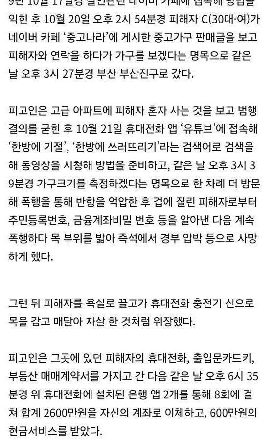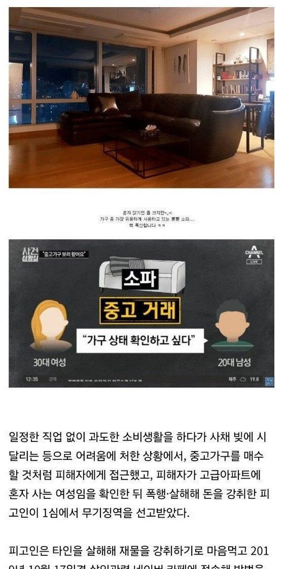 중고나라에 올라온 쇼파 사진 보고 살해 했던 사건