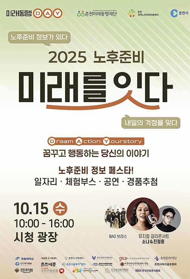 춘천미래동행재단이 15일 춘천시청 광장에서 '2025 노후준비 미래를 잇다' 행사를 연다.