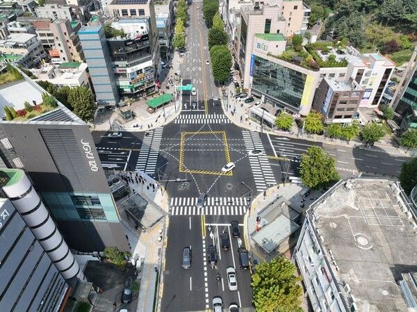 서울 서초구는 보행자 불편과 사고 위험이 높았던 방배역사거리 전방향(4개소)에 차량 중심의 교통섬을 제거하고 보행 대기공간을 확장하는 공사를 완료했다고 13일 밝혔다.